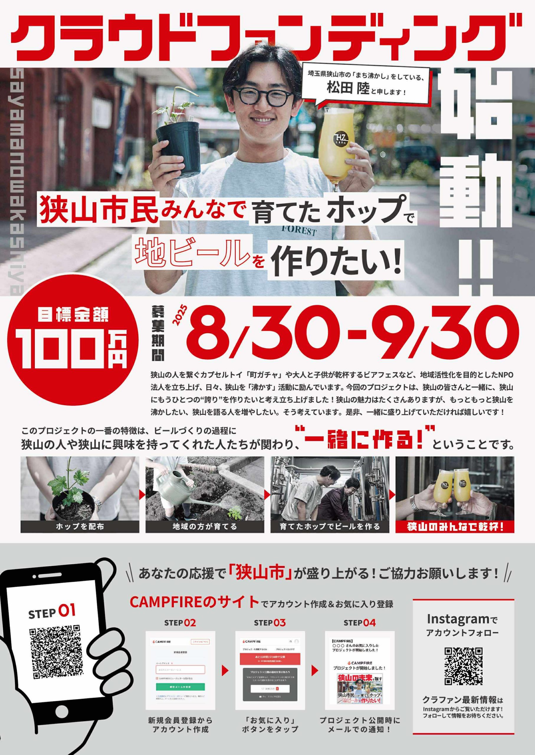また、松田さんは現在、狭山市民みんなで育てたホップで地ビールを作るプロジェクトも進行中で、クラウドファンディングにも挑戦しています。